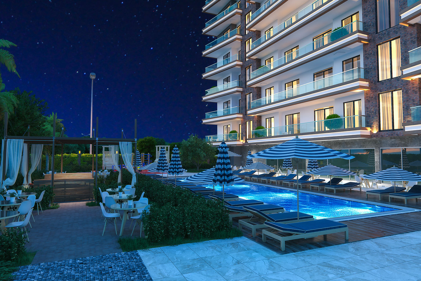 SONAS LOFT RESİDENCE complex is located in one of the most vibrant areas of Alanya, Mahmutlar district. The total area of the complex is 2300 m2, and it consists of 1 nine-story block- with 56 apartments. This unique complex is perfect for those who appreciate comfort and want to live in an area that has everything you need nearby. The developed infrastructure, the close proximity of various cultural and domestic facilities, green surroundings with mountain scenery, and orange and banana groves is perfect for both, lovers of a relaxing holiday and those who prefer an active lifestyle.